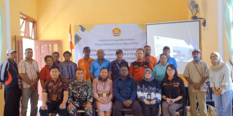 Hadir dalam kegiatan Pengembangan Desa Mitra (PDM) diantaranya Emiliana B Rahail, S.H., M.H.(Perwakilan Tim Pengabdian PDM), Biliardo Yance Matias Diberi, S.IP (Kepala Distrik Sota), Dr. Yuldiana Zesa Azis, S.H., M.H. (Pemateri), Rizal Yuliansyah S.STP (PLBN) dan perwakilan dari Satgas yakni Letda Ctp Soesgiharto bersama anggota Pos Kotis.