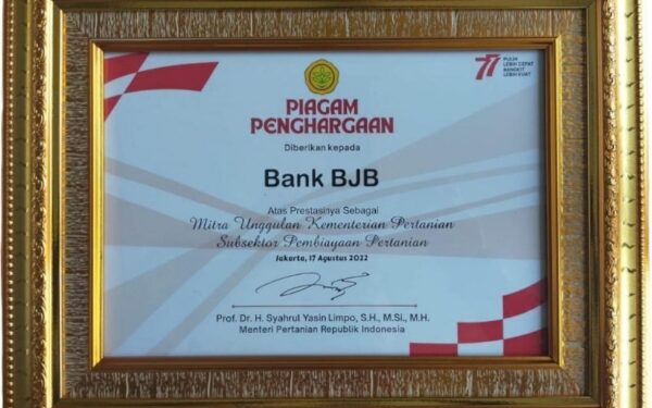 BEDAnews – bank bjb meraih penghargaan dari Kementerian Pertanian RI karena senantiasa mendukung laju perekonomian daerah salah satunya melalui pembiayaan kepada sektor pertanian.