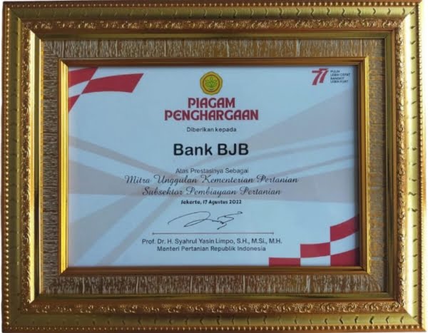 Penghargaan kepada bank bjb diberikan pada Rabu, 17 Agustus 2022 bertepatan dengan peringatan Hari Ulang Tahun Republik Indonesia ke-77.