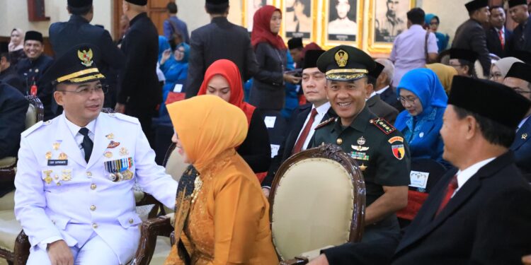 Surabaya – bedanews.com – Danrem 081/DSJ, Kolonel Inf H. Sugiyono menghadiri pelantikan Eddy Supriyanto sebagai Pj. Walikota Madiun. Ia menyebut, kehadirannya merupakan bentuk dukungan terhadap sinergitas yang telah terjalin baik selama ini.