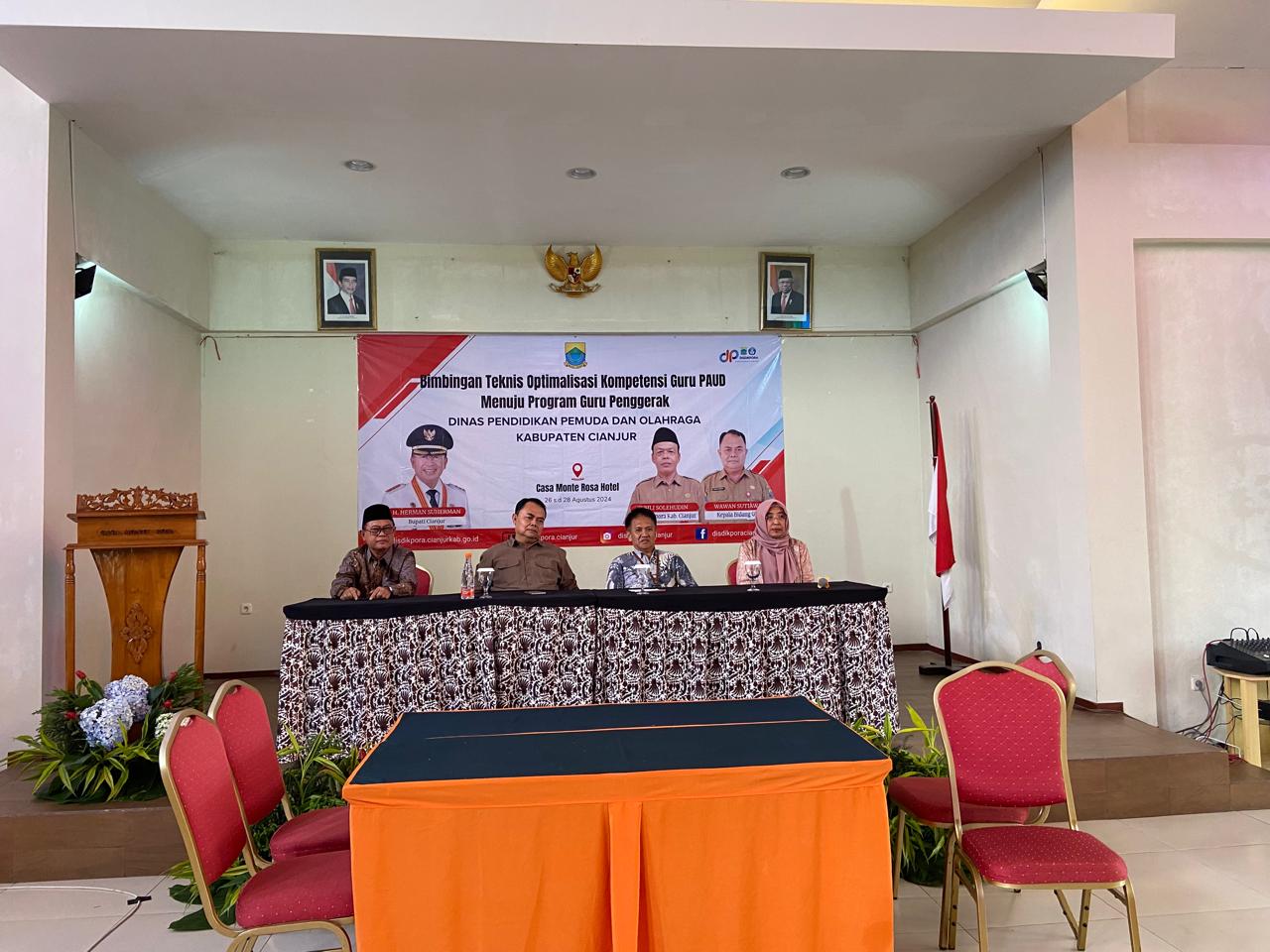 Kegiatan tersebut di laksanakan, di Casa Monte Rosa Hotel Ciloto Cianjur di mulai dari tanggal 26 hingga 28 Agustus 2024. Di buka Kadisdikpora yang di wakili oleh Sekdisdikpora Kabupaten Cianjur, Ibu Ira Soraya, SE, M.Si.