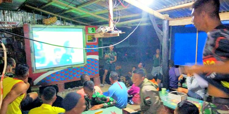 ELELIM – bedanews.com – Gegap Gempita Piala Dunia sangat terlihat di seantero negeri, oleh karena itu Satgas Yonif Raider 142/KJ mengajak warga yang berada di sekitar pos untuk nonton bersama/bareng (Nobar) di Makotis Elelim, Distrik Elelim, Kabupaten Yalimo, Papua Pegunungan, Rabu (7/12/2022).