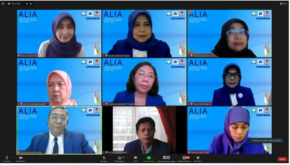 Jakarta – bedanews.com – Forum Perpustakaan Perguruan Tinggi Indonesia (FPPTI) menyelenggarakan Grand Final Lomba Inovasi Perpustakaan Perguruan Tinggi (ALIA) 2021 dengan tema SMART LIBRARY FOR SMART SOCIETY DURING PANDEMIC, Jum’at (8/10).