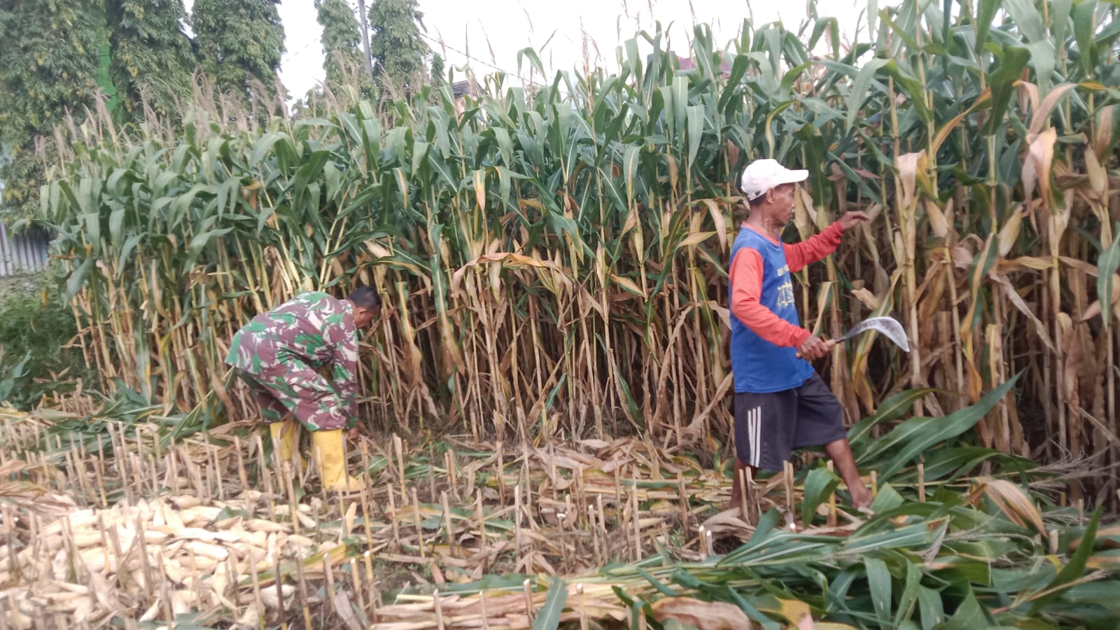 Pendampingan Petani, Babinsa Kodim Ponorogo Bantu Panen Jagung