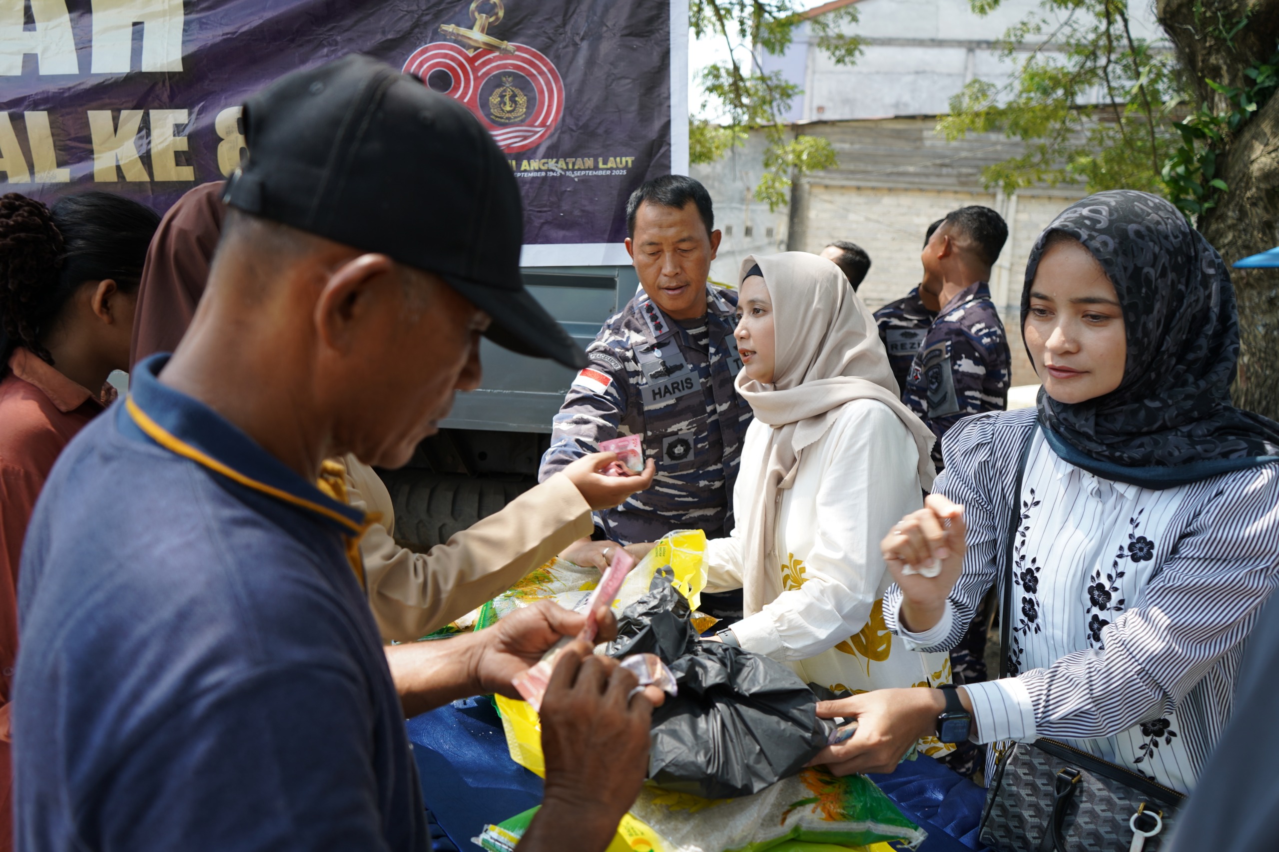 Dumai,- Dalam rangka memperingati Hari Jadi Ke-80 TNI Angkatan Laut, Pangkalan TNI Angkatan Laut Dumai kembali menunjukkan kepeduliannya kepada masyarakat dengan menggelar Bazar Murah Sembako di Desa Mangku Jaya, Kecamatan Sungai Sembilan, Kota Dumai, Rabu (24/09/2025).