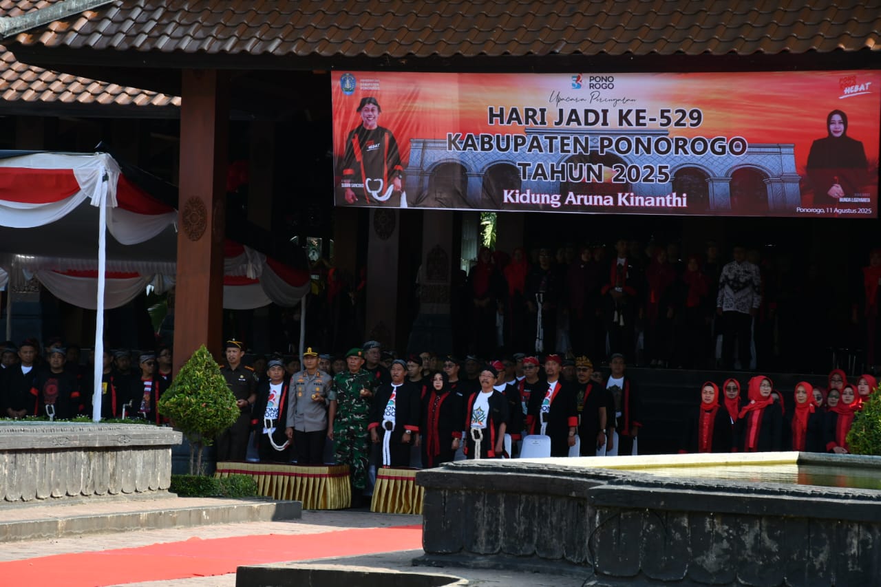 Upacara Peringatan Hari Jadi ke – 529 Kabupaten Ponorogo yang digelar di Halaman Pendopo Kabupaten Ponorogo tersebut diikuti antara lain: Bupati Ponorogo, H Sugiri Sancoko, S.E, M.M, Wakil Bupati Ponorogo, Hj Lisdyarita, S.H, Komandan Kodim 0802/Ponorogo, Letkol Inf Dwi Soerjono beserta Ketua Persit KCK Cab. XVI Dim Ponorogo, Ibu Dina Soerjono, Kapolres Ponorogo, AKBP Andin Wisnu Sudibyo, S.I.K, M.H, Pengadilan Agama Ponorogo, Drs. H. Maftuh Basuni, M.H.