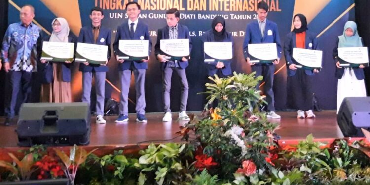 Berprestasi mengharumkan institusi di level Internasional dan Nasional 35 mahasiswa hebat mendapat penghargaan dari Rektor UIN SGD Bandung Prof.Dr.Mahmud,M.Si,dalam Acara Apresiasi Mahasiswa Berprestasi Nasional-Internasional,thema “Boos Your Potencial, Reach Your Dream” di gedung Pendidikan Profesi Guru (PPG) Kampus II,Kamis, 29 Desember 2022.