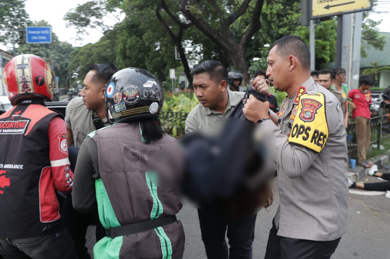 TANGERANG || bedanews.com – Kapolres Metro Tangerang Kota, Polda Metro Jaya, Kombes Pol Zain Dwi Nugroho dengan sigap membantu korban kecelakaan lalu lintas di Bunderan Tugu Adipura Jalan M. Yamin, Kecamatan Tangerang, Kota Tangerang, Banten, pada Kamis (23/05/2024).