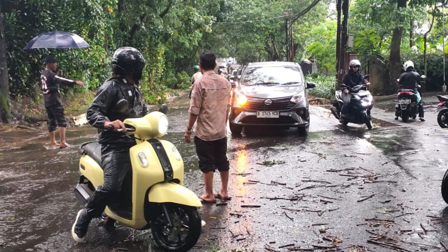 Hujan deras disertai angin kencang yang melanda Kota Bandung pada Jumat, 3 April 2026, mengakibatkan puluhan kejadian darurat di berbagai wilayah. Hingga pukul 16.45 WIB, tercatat sebanyak 34 kejadian yang terdiri dari 31 pohon tumbang, 2 baliho/pylon sign roboh, serta 1 kejadian banjir akibat tanggul jebol.