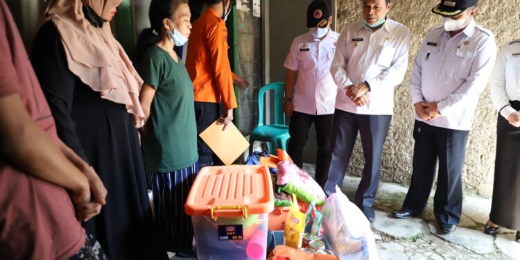 Cimahi, BEDANews.com – Pelaksana Tugas (Plt.) Wali Kota Cimahi, Letkol (Purn.) Ngatiyana didampingi Sekretaris Dinas Perumahan dan Kawasan Permukiman (DPKP) Kota Cimahi, Camat Cimahi Utara beserta unsur Badan Penanggulangan Bencana Daerah (BPBD) dan Taruna Siaga Bencana (Tagana) meninjau secara langsung lokasi korban rumah yang roboh pada bagian atap/plafon dan bagian belakang rumah berlokasi di Jalan Sukarasa RT 05 RW 11 Kelurahan Citeureup Kecamatan Cimahi Utara Kota Cimahi (18/5/22).