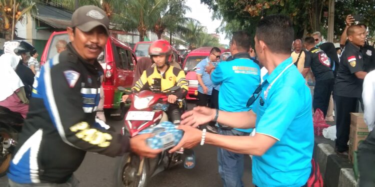 IPWL GMDM DPW Cianjur yang dipimpin lansung oleh Ketua DPW BAKORNAS IPWL GMDM, Ade Kusnadi, dan hadir Ketua DPKC Kota Cianjur, Gekbrong, Cikalong, dan Cibeber serta turut hadir IPWL GMDM Bogor membagikan takjil untuk berbuka puasa di Alun-alun Kota Cianjur, Jabar, Minggu (7/4/2024).