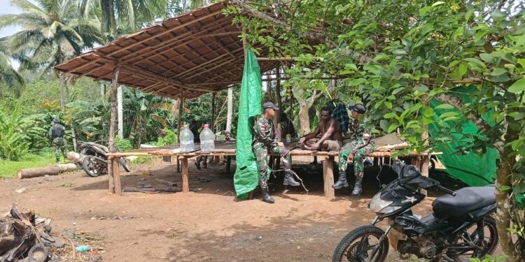 Salah satu upaya yang dilakukan personel Satgas dari Pos Kweel untuk menjaga stabilitas keamanan di wilayah perbatasan Papua dengan melakukan kegiatan teritorial berupa anjangsana mendatangi langsung para warga di desa binaannya.