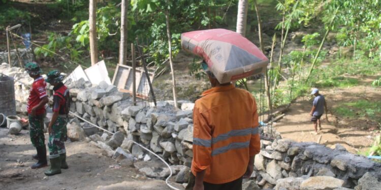 Bantul – Setiap Prajurit yang tergabung dalam TMMD Reg 119 Kodim 0729 saat menuju sasaran pekerjaan fisik diwajibkan membawa satu sak semen. Padahal kondisi untuk menuju lokasi masih ekstrim. Satgas TMMD Reg 119 Kodim 0729 Serma tri Gunawan menyampaikan, hal itu untuk menjaga stamina prajurit agar tetap prima.