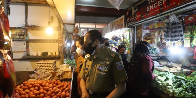 CIMAHI, BEDANews.com – Plt. Wali Kota Cimahi Let.kol. Inf. (Purn.) Ngatiyana didampingi Kepala Dinas Perdagangan, Koperasi, UMMK dan Perindustrian (Disdagkoperin) Kota Cimahi, Dadan Darmawan beserta jajaran UPTD Pasar Kota Cimahi melakukan sidak harga barang-barang kebutuhan pokok menjelang Hari Raya Idul Adha 1442 H/2021 di Pasar Atas Baru Cimahi pada Senin pagi (19/07/2021).