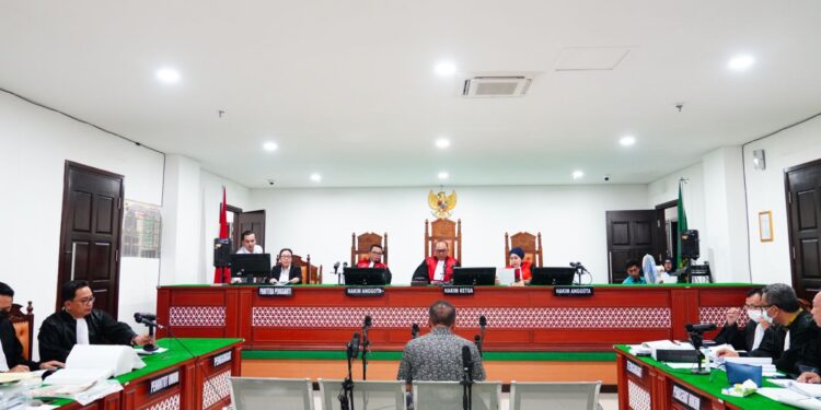 Sidang yang digelar secara terbuka untuk umum, dipimpin oleh Majelis Hakim Basuki Wiyono, S. H., M.H., dengan Hakim Anggota 1 Sorta Ria Neva, S.H., Hakim Anggota 2 Joko Saptono, S.H., M.H., Panitera Pengganti Nining Anggraini K, S.H., Jaksa Penuntut Umum (JPU) Danu Bagus Pratama, S.H., M.H., Hasbuddin B. Paseng, S.H. dan Pengacara tersangka diantaranya Jhon, S.E., Panggabean, S.H., M.H., Daance Yohanes, S.H., Togap L. Panggabean, S.H., Mangasi Ambarita, S.H., Ganti Lombantoruan, S.H., M.H.