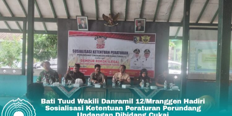 Demak – bedanews.com – Kabag Perekonomian Sekda Kab. Demak, Arif Sudaryanto, S.Sos, M.Si berikan Sosialisasi Ketentuan Peraturan Perundang Undangan Dibidang Cukai yang dihadiri Danramil 12/Mranggen yang diwakili Bati Tuud Koramil 12/Mranggen, Serma Wahyu Hidayat menghadiri undangan sosialisasi ketentuan peraturan perundang-undangan di bidang cukai yang bertempat di Pendopo Kecamatan Mranggen, Kabupaten Demak, Kamis (11/05/2023).