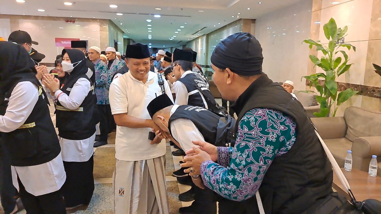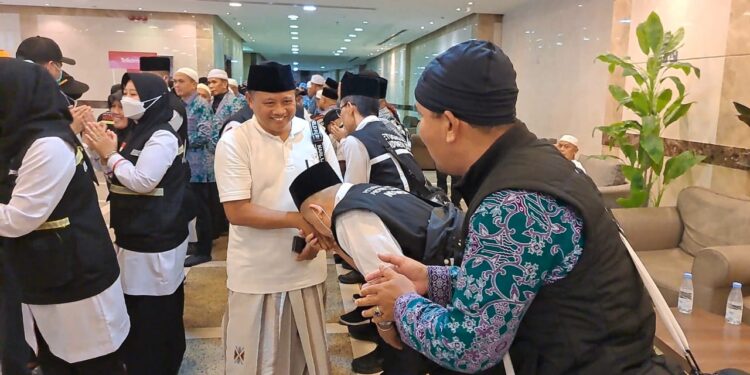 Wakil Gubernur yang juga Amirul Hajj Jemaah Haji Jabar Uu Ruzhanul Ulum, bersama Kepala Kantor Wilayah Kementerian Agama Jawa Barat Ajam Mustajam melepas kepulangan dalam sebuah Apel Petugas di Hotel Arkan Bakah, Mahbas Jin, Kota Mekkah.