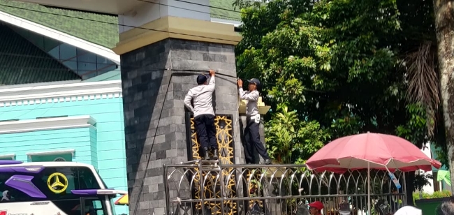 CIAMIS, BEDAnews – Sikap sigap personil Dinas Perhubungan (Dishub) Kabupaten Ciamis mengamankan kabel yang menjuntai dan nyangkut bus pengantar jamaah haji Ciamis keloter 26 Jks tanpa APD naik pagar ketika melewati gerbang Gedung KH Irfan Hielmi (komplek Islamic Center Ciamis) bukan hanya menjadi tontonan namun mendapat apresiasi dari banyak keluarga pengantar jamaah lantaran dianggap aksi heroik.