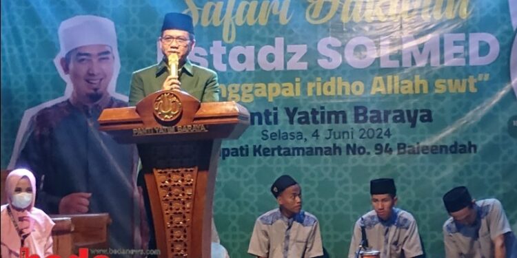 “Siapa tahu dari mereka akan muncul pemimpin baru yang kompeten. Misalnya jadi Polisi, TNI, Insinyur, Dokter, Presiden, Gubernur, Walikota, juga Bupati,” katanya saat memberikan sambutan di acara Safari Dakwah Ustadz Solmed.