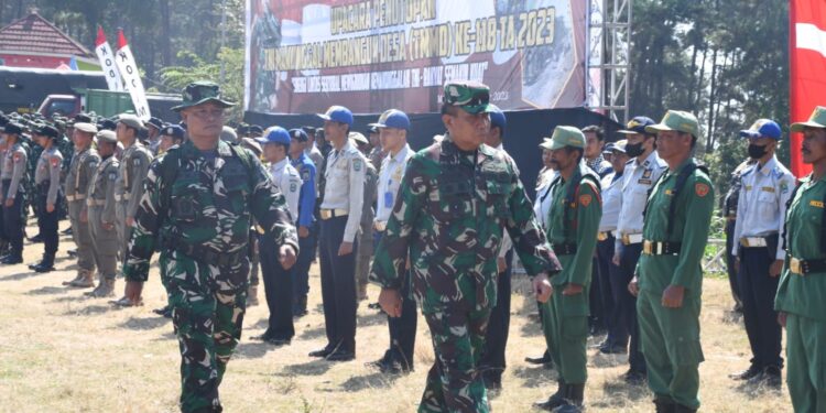 Magetan – bedanews.com – Kapoksahli Pangdam V/Brawijaya, Brigjen TNI Totok Suhartono menutup pelaksanaan TMMD ke-118 Kodim 0804/Magetan. Upacara penutupannya berlangsung di Lapangan Bumi Perkemahan Alastuo Poncol Kabupaten Magetan, Kamis (19/10/2023). Tampak hadir Danrem 081/DSJ, Kolonel Inf H. Sugiyono dan Dandim jajarannya, serta Forkopimda Magetan.