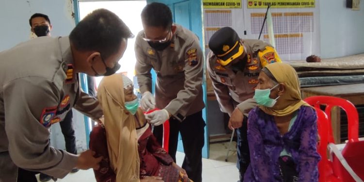 Demak – bedanews.com – Bersamaan menyambut bulan suci Ramadhan, Polres Demak menggelar vaksinasi Covid-19 terhadap Lansia di Desa Sumberejo, Kecamatan Mranggen, Kabupaten Demak. Selain mengadakan vaksinasi, juga di balut dengan penyerahan bantuan sosial kepada kaum dhuafa.