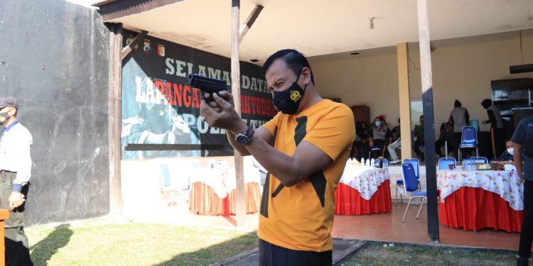 Tuban – bedanews.com – Kepala kepolisian Resor Tuban AKBP Darman, S.I.K melaksanakan kegiatan latihan menembak bersama Forkopimda kabupaten Tuban bertempat di Lapangan tembak Mapolres setempat, Jum’at (27/08).