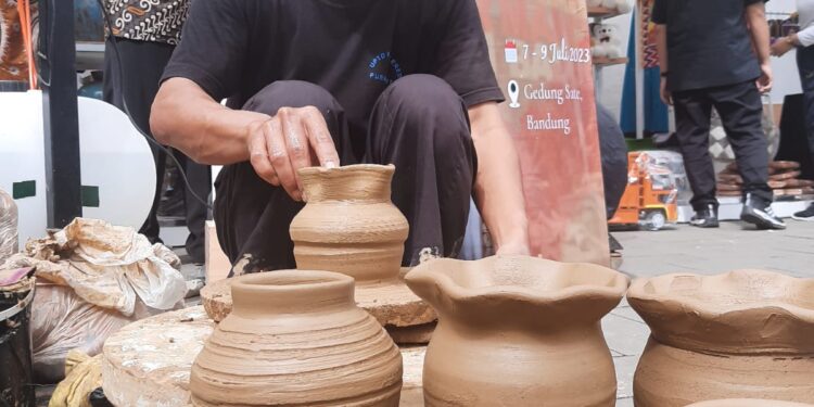 “Prosesnya masih panjang. Dari sini lalu dijemur, sesudah kering lalu dibakar dan _finishing_ , sekitar satu minggu prosesnya,” ungkap Jujun ditemui di acara KKJ-PKJB, Gedung Sate, Kota Bandung.