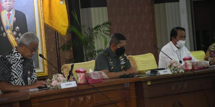 Semarang – bedanews.com – Kasdam IV/Diponegoro, Brigjen TNI Parwito mewakili Pangdam IV/Diponegoro, Mayjen TNI Widi Prasetijono menghadiri rapat Forum Koordinasi Pimpinan Daerah (Forkopimda) Jateng, bertempat di kantor Gubernur Jawa Tengah, Jl. Pahlawan No. 9, Mugassari, Rabu (27/04/2022).