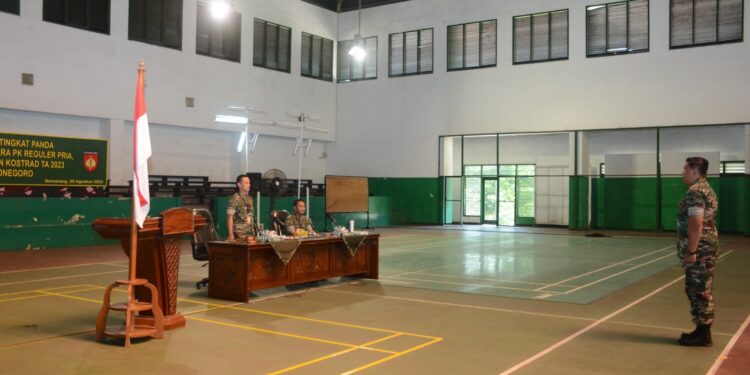 Semarang – bedanews.com – Pangdam IV/Diponegoro, Mayjen TNI Widi Prasetijono diwakili Kasdam IV/Diponegoro, Brigjen TNI Ujang Darwis, M.D.A memimpin pelaksanaan sidang Pantukhir tingkat panda penerimaan Caba PK TNI AD Reguler Pria, khusus, Kopassus dan Kostrad TA 2023, bertempat di GOR Prajurit, Kompleks Makodam, Jum’at (25/8/2023).