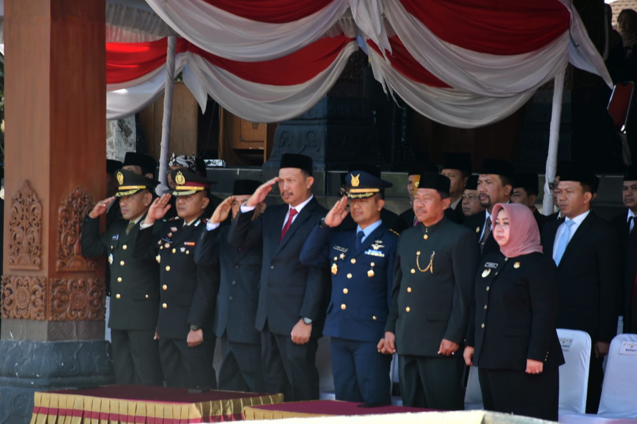 Upacara yang digelar di halaman Pendopo Kabupaten Ponorogo jl. Aloon Aloon Utara, Kelurahan Mangkujayan, Kecamatan / Kabupaten Ponorogo dengan penanggung jawab kegiatan Bupati Ponorogo, H. Sugiri Sancoko, S.E, M.M, tersebut dihadiri sekitar 200 orang undangan.