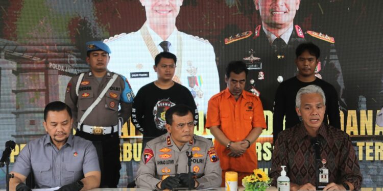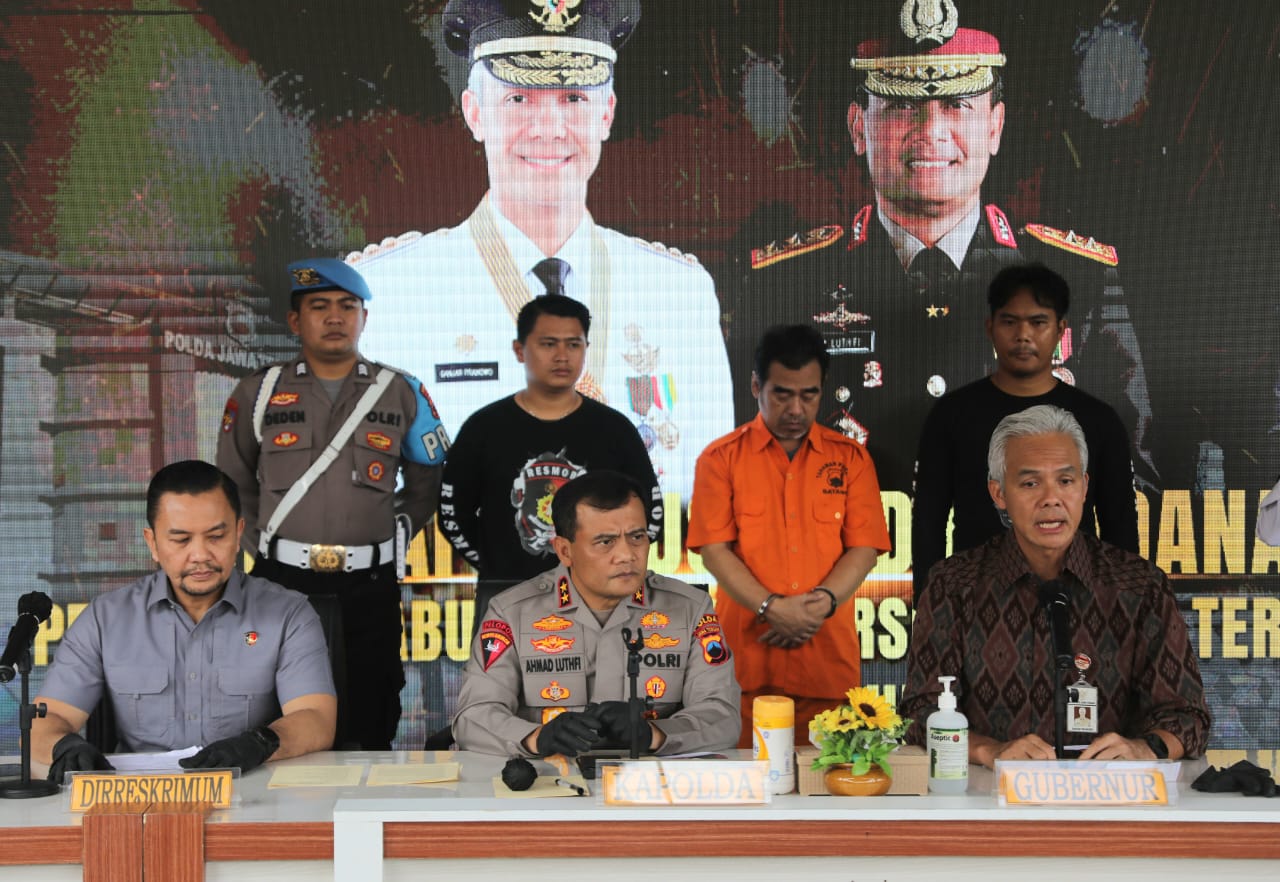 Batang – bedanews.com – Wajah emosi terlihat saat Gubernur Jawa Tengah, Ganjar Pranowo menanyai Wildan Mashuri (57) saat konferensi pers di Mapolres Batang, Selasa (11/4/2023).