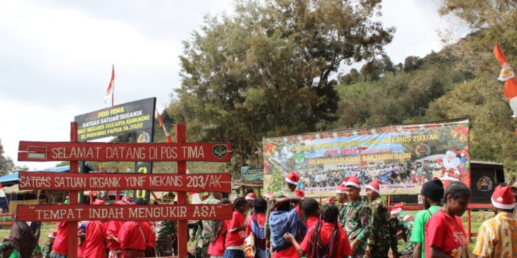 Kebahagiaan Perayaan Natal Satgas Yonif Mekanis 203/AK Bersama Masyarakat Desa Tima