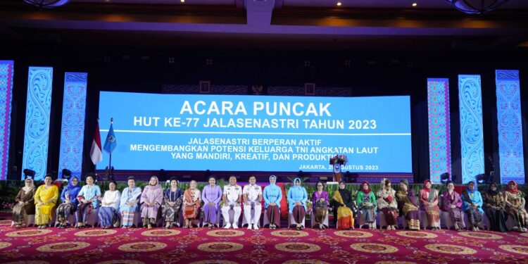 Jakarta – Ketua Umum (Ketum) Dharma Pertiwi Ny. Vero Yudo Margono menghadiri acara puncak HUT ke-77 Jalasenastri Tahun 2023 yang bertemakan “Jalasenastri Berperan Aktif Mengembangkan Potensi Keluarga TNI Angkatan Laut Yang Mandiri, Kreatif dan Produktif”, bertempat di Balai Samudra, Kelapa Gading, Jakarta Utara, Selasa (29/8/2023).