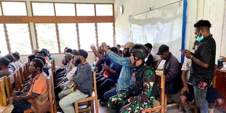 PEGUNUNGAN BINTANG – bedanews.com – Satgas Yonif 143/TWEJ bersama aparat teritorial dan Polsek setempat turut menghadiri sekaligus mengamankan jalannya rapat kerja I Ikatan Keluarga Okbi di Distrik Okbibab, Kab. Pegunungan Bintang, Papua, Rabu (4/1/2023).