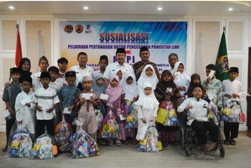 FOTO BERSAMA-Kepala ATR/BPN Karawang, Nurus Sholichin, A.Ptnh, MM foto bersama Pegawai BPN dan anak yatim usai acara santunan di bulan muharram. (Foto Ist).