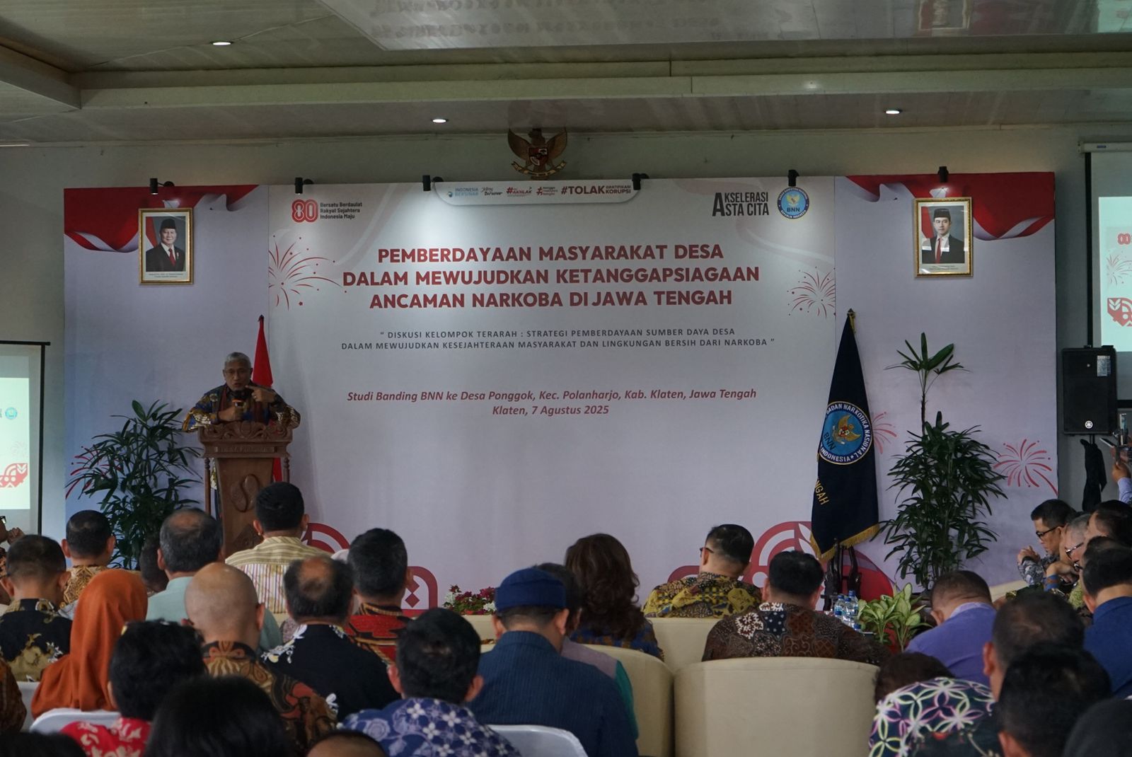 KLATEN || Bedanews.com – Kepala BNN Provinsi Jawa Tengah, Brigjen Pol. Dr. H. Agus Rohmat, S.I.K, S.H, M.Hum mendampingi Kepala Badan Narkotika Nasional Republik Indonesia (BNN RI), Komjen Pol. Dr. Marthinus Hukom, S.I.K, M.Si, melakukan kunjungan kerja ke Desa Ponggok, Kecamatan Polanharjo, Kabupaten Klaten, Jawa Tengah, Kamis (7/8).