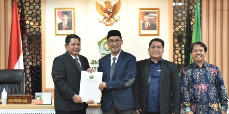 Penyerahan Keputusan Menteri Agama (KMA) tentang Penetapan Guru Besar oleh Direktur Jenderal Pendidikan Islam Kementerian Agama RI, Muhammad Ali Ramdhani.