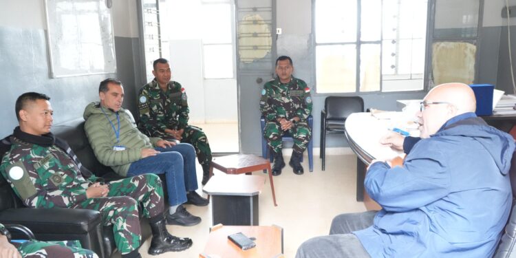 Lebanon – Komandan Satuan Tugas Yonmek TNI Konga XXIII-R UNIFIL Kolonel Inf Ragung Ismail Akbar, S.Sos., M.IPol. memberikan cindera mata Keris dari Solo kepada Mr. Muhammad Sweidan yang merupakan kepala pemerintahan di daerah Adshit Al Qusayr pada saat kegiatan KLE (Key Leader Engagement), bertempat di kantor Mayor Adshit Al Qusayr (Municipality) Lebanon Selatan, Jumat (15/03/2024).