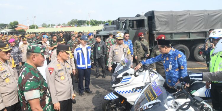 Semarang – bedanews.com – Pangdam IV/Diponegoro, Mayjen TNI Widi Prasetijono hadiri apel gelar pasukan Kepolisian terpusat dengan sandi “Ketupat Candi 2023” dalam rangka kesiapan pengamanan Hari Raya Idul Fitri 1444 H wilayah Jateng di Lapangan Apron Alpha Lanumad Ahmad Yani, Semarang.