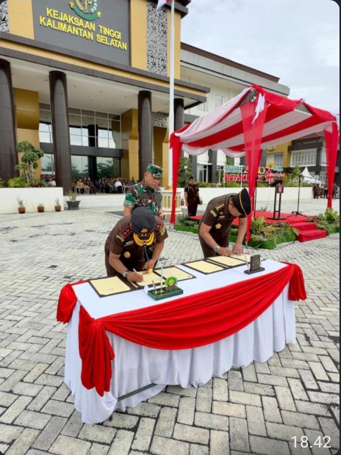 Penandatanganan PKS Antara Kejaksaan Tinggi Kalsel bersama Kejaksaan Tinggi Kalteng dengan Kodam XXII/Tambun Bungai