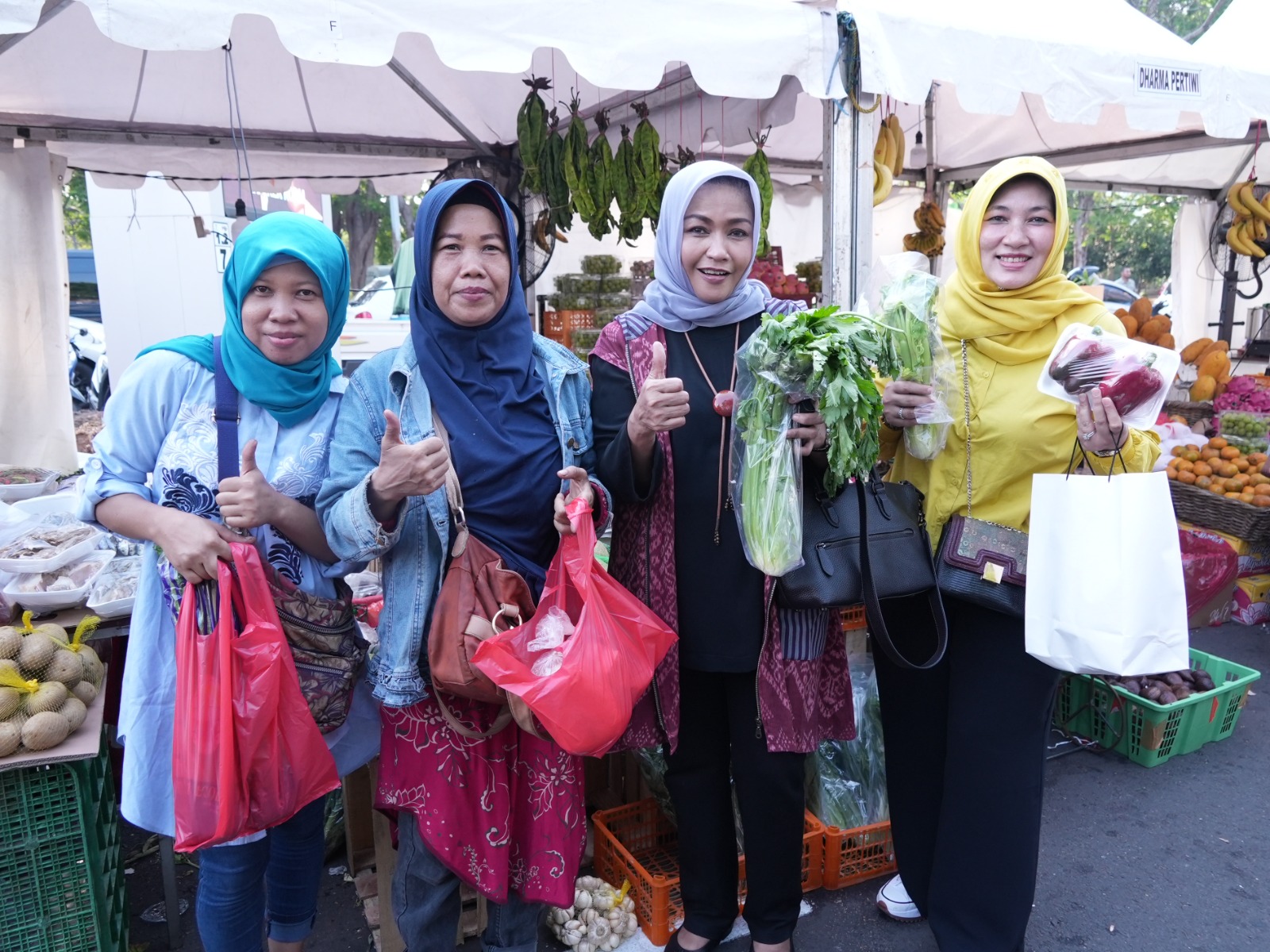 Dalam kesempatan tersebut, Ketua Harian Dharma Pertiwi bersama beberapa Pengurus Dharma Pertiwi mengunjungi beberapa stand dan berbelanja serta mencicipi beberapa makanan.