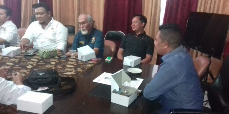 SUKABUMI || bedanews.com – Ketua Komisi Pemilihan Umum (red-KPU) Kabupaten Sukabumi, Kasmin Belle, bersama jajarannya sambut baik kedatangan Ketua Tim Audensi PWI Kabupaten, Sukabumi Rachmat Djuniardi, bersama sejumlah anggota PWI lainnya memenuhi undangan, Senin (10/6/2024), di Aula Pertemuan KPU, jalan Siliwangi No.92 Kecamatan Cibadak.