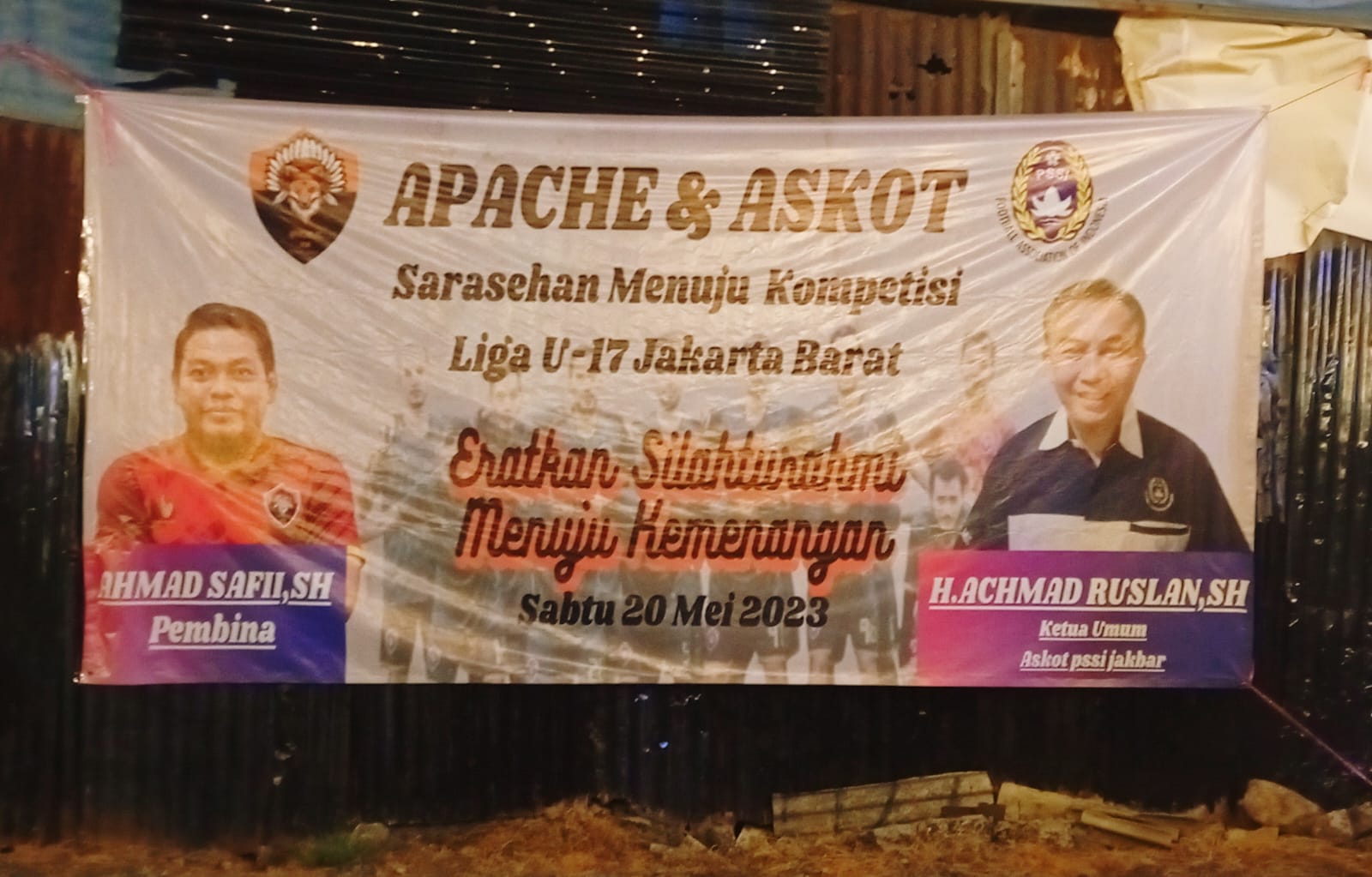 Acara dengan tema “Menuju Kompetisi Liga U-17 Jakarta Barat”, turut dihadiri Ketua Umum Askot PSSI Jakarta Barat, H. Ahmad Ruslan, Waketum, Madsanih Manong, pembina, Ahmad Safii, komedian, Azis Gagap, pengurus Askot PSSI Jakarta Barat beserta anggota Club sepakbola Apache FC.