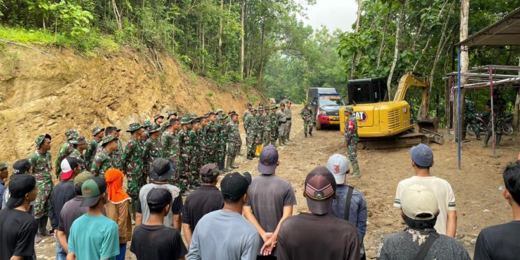 Bantul – Satgas TMMD Reguler 119 Kodim 0729 Bantul pembangunan jembatan semakin menarik perhatian dengan penggunaan alat berat excavator yang dikerahkan oleh Satgas TMMD di Dusun tangkil, Kalurahan Muntuk, Kapanewon Dlingo dengan lebar 12 M dan Bentang 12 M.