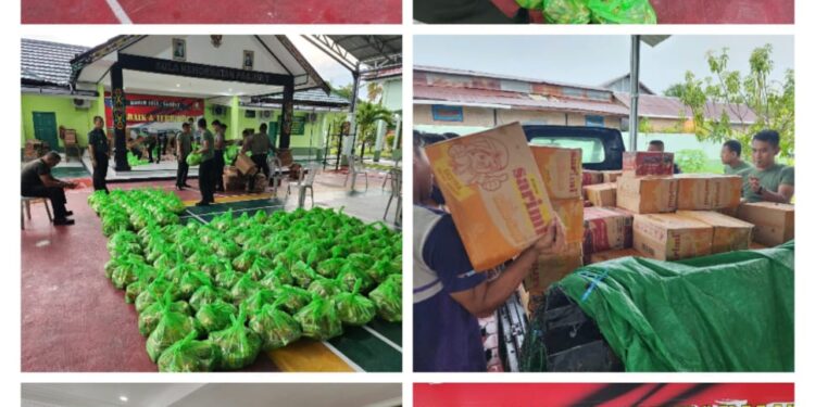 Para prajurit Kodim 1015/Sampit bersama-sama untuk mengemas bantuan dalam bentuk paket sembako, yang selanjutnya akan disalurkan kepada masyarakat korban banjir di wilayah tanggung jawab Kodim 1015/Sampit.