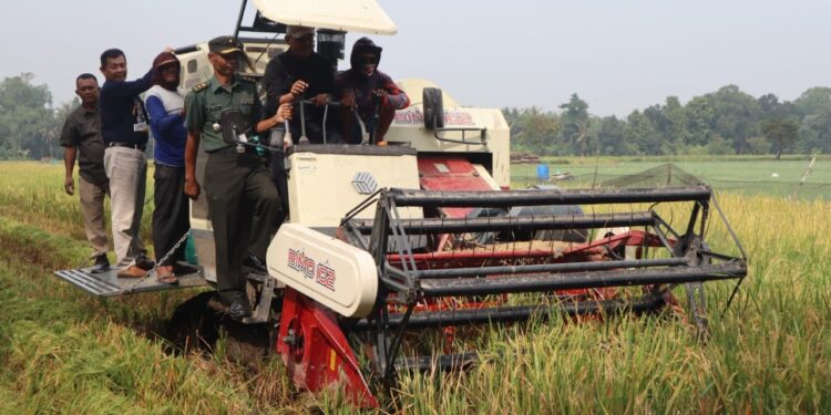 BANTUL – Dandim 0729/Bantul Letkol Inf Muhidin, S.H. M.I.P, diwakili Kasdim 0729/Bantul Mayor Cba Suryadi bersama Kepala Dinas Pertanian dan Ketahanan Pangan Kab. Bantul Joko Walyo, S.Pt.,M.Si. , mendampingi Dirjen tanaman pangan kementerian pertanian RI Dr Ir.Suwandi dalam rangka panen padi dan gerakan tanam padi diwilayah Bulak Pulokadang Canden Kecamatan Jetis dan di Bulak Beran Canden Kecamatan Jetis Kabupaten Bantul, Jum’at (24/05/2024).