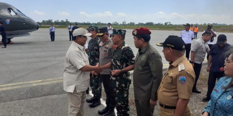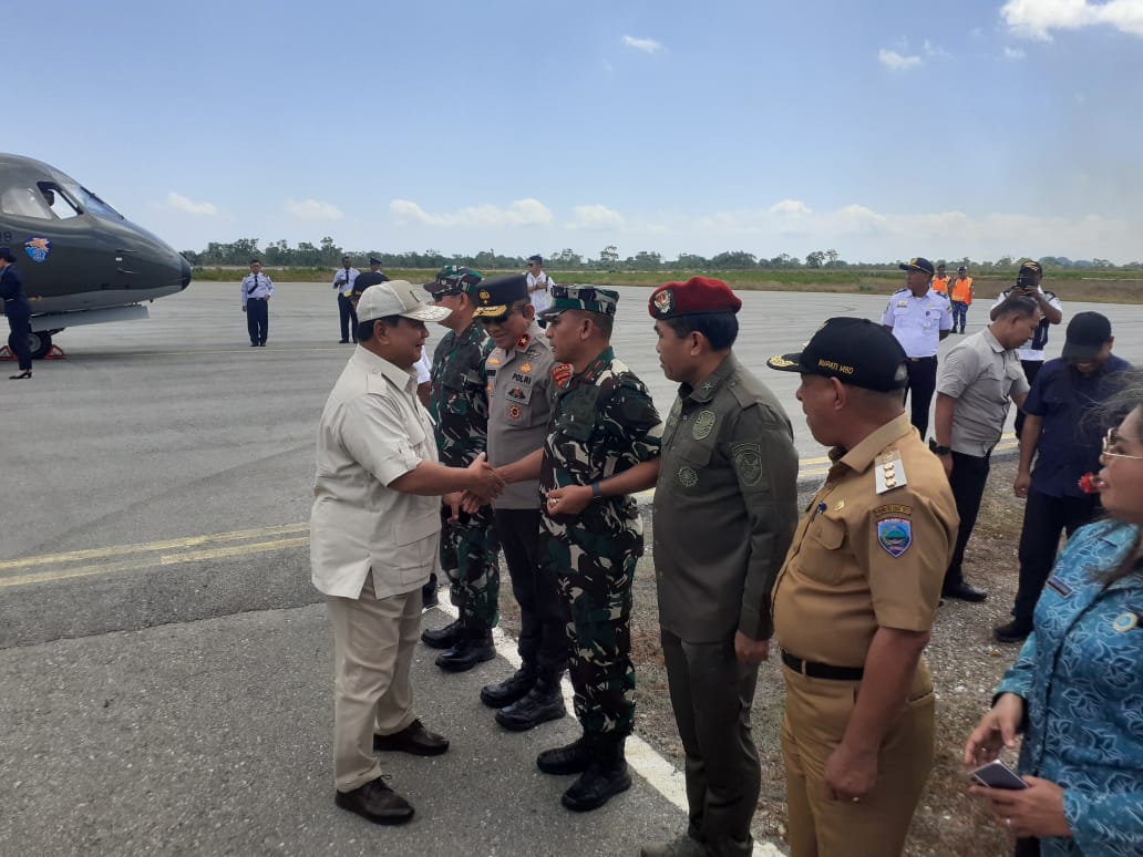 Melanjutkan kunjungan kerjanya di Indonesia Timur setelah dari NTT, Menteri Pertahanan Prabowo Subianto beserta rombongan mendarat di Bandar Udara Jos Orno Imsula, Pulau Moa, Kabupaten Maluku Barat Daya.