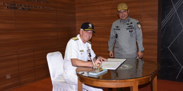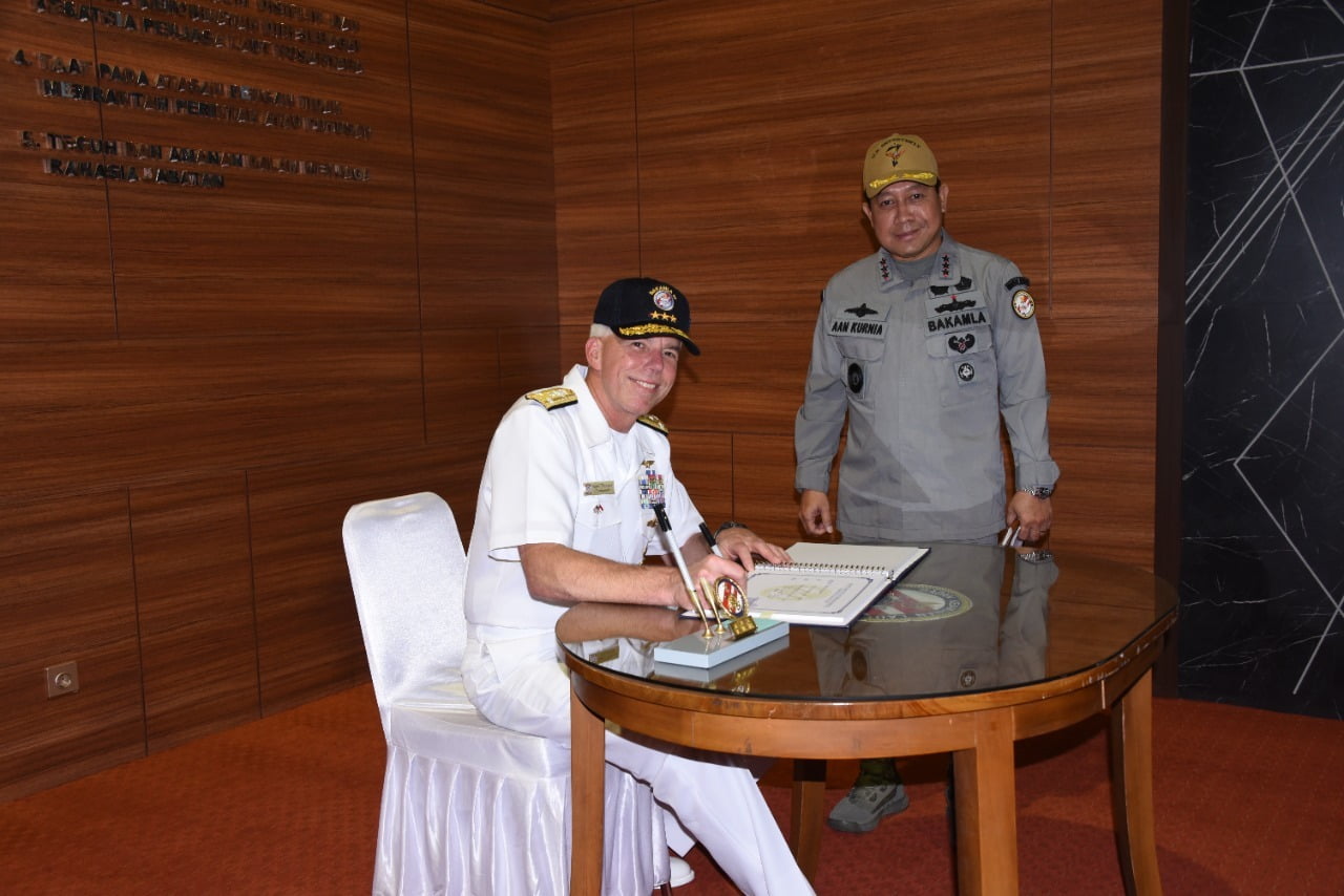 Jakarta – bedanews.com – Kepala Bakamla RI, Laksamana Madya TNI Dr. Aan Kurnia menerima kunjungan kerja Komandan United State (US) Navy 7th Fleet Vice Admiral Karl O. Thomas.