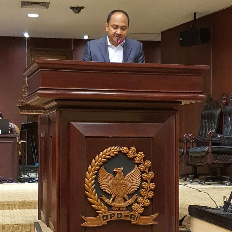 Ketua Komite I yang dipimpin H. Fachrul Razi MIP menyampaikan laporan salah satunya terkait perpanjangan masa jabatan Gubernur Papua Barat.