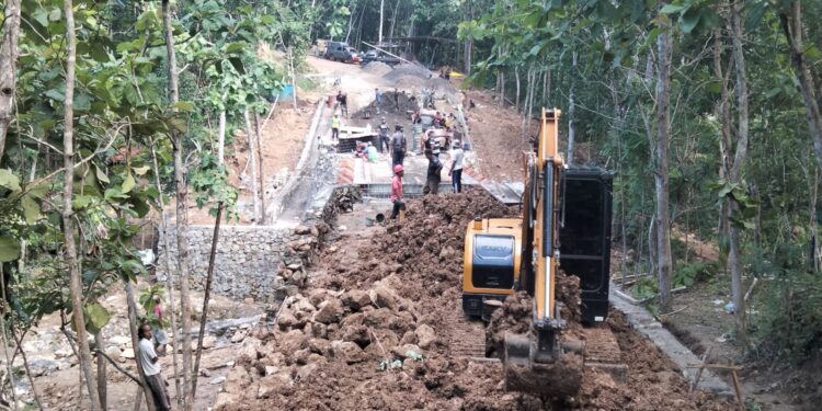 Bantul – Serma Tri Gunawan salah seorang personel Satgas TMMD Reguler ke 119 Kodim 0729 Bantul dalam kesehariannya melaksanakan tugas di lokasi sebagai Bati Bakti, mengawasi serta mengarahkan operator alat berat excavator dalam pengerjaan pelebaran/perbaikan jalan sepanjang 1000 M dan pembangunan jembatan di Dusun Tangkil, Kal. Muntuk & Dusun Salam, Kalurahan Temuwuh, Kapanewon Dlingo, Kabupaten Bantul. Senin (11/03).